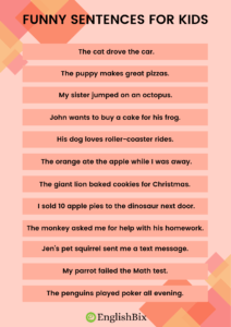 It is somewhat understandable why grammar can seem like an intimidating subject, especially for a kid. However, there’s always a fun way to learn new things. With funny sentences, kids can learn how to construct sentences, explore and learn new words and also have a fun time simultaneously.