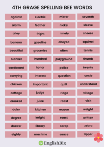 Englishbix will help kids to learn new words and improve their vocabulary. This time we have prepared an alphabetically sorted words list for spelling bee for Grade 4 students..