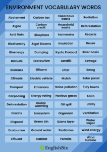The Environment plays a vital role in the healthy living of human beings. This is considered as the only home for human and other living beings. It provides air, water, food, and other basic requirements. It is mankind’s support system. So let’s start our day by learning some environmental words.