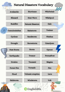 Names of Natural Disasters Vocabulary
