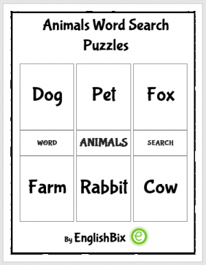 The word search printables tests your knowledge of animal vocabulary words such as Pet, Fox, Wild etc.