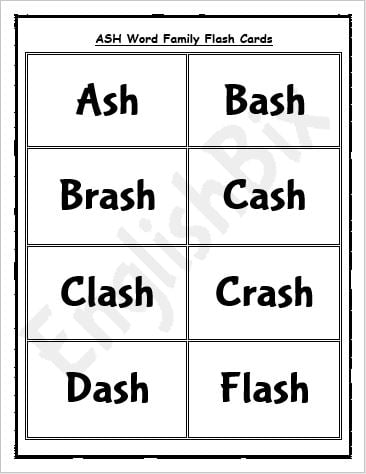 - Flashcards with words having “-ASH”.