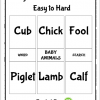 Print the puzzle and let enjoy learning new words and item names related to new bornanimal babies.
