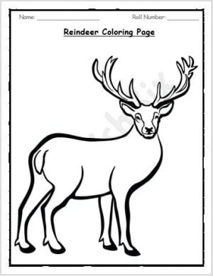The worksheet includes a full-page picture of a simple reindeer to color in. It is perfect for any child looking to pass their time in the winter season with an easy yet fun activity.