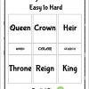 The search printables test your knowledge of items and words related to British Royal family such as crown, heir, throne.