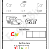 Practice ‘Car’ sight word with this fun worksheet where kids have to cut and paste the letters of the word and trace it.