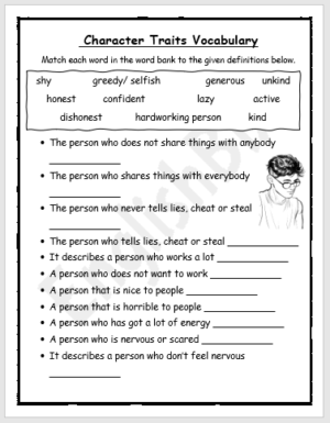 This is an ideal worksheet for students to enrich their vocabulary about the concept of character traits. Can you identify the traits of your favorite characters?