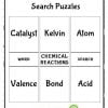 The word search printables test your knowledge of Chemical reaction vocabulary which include words like acid, energy, atom etc.