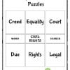 The word search printables test your knowledge of Civil Rights vocabulary which include words like human, rights, due etc.