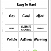 The search printables test your knowledge of items and words related to change in climate such as coal, gas, heat.