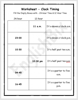 Our EnglishBix team has created Clock and Time telling workbook for elementary grade kids