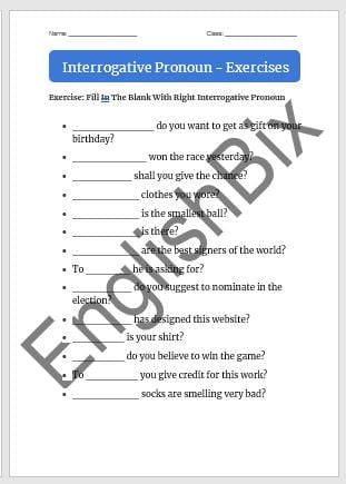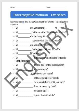 - Fill in The Blank with Right Interrogative Pronoun