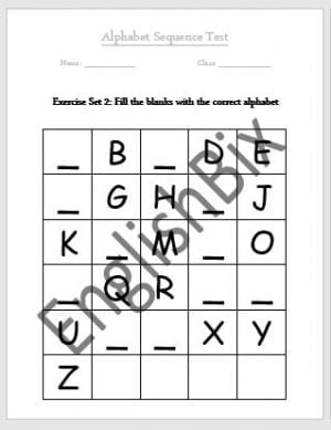 You have got a nice looking alphabet sequence completion worksheet where students have to fill in the gaps with the right alphabet to get the sequence completed from A to Z.