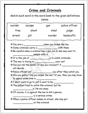 This worksheet is perfect for students who are learning the basics of crime and criminals.