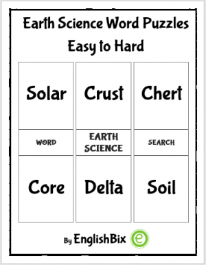 The search printables test your knowledge of words related to study of earth such as crust, chert, core.