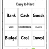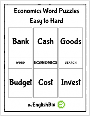 The search printables test your knowledge of items and words related to field of economics such as bank, cash, budget.