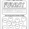- A tracing activity of the word “funny” in capital and minuscule letters