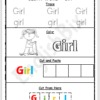 A simple ‘Girl’ sight word practice worksheet for preschool and kindergarten kids.