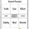 The word search printables test your knowledge of Growth Mindset vocabulary which include words like grit, develop, examine etc.