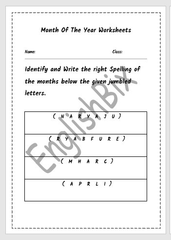Here you have a simple months of the year worksheet where you have to unjumble the letters to from correct months and write their spelling below the given jumbled letters.