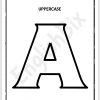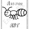 The Coloring page set includes uppercase and lowercase A, along with pictures of different animals and objects like airplane, apron, ant, apple, arrow etc.
