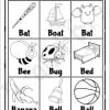 This worksheet includes a total of nine cards—with pictures—starting with the letter B. The words are: