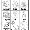 This worksheet includes nine flash cards with pictures—starting with the letter E. The words are:
