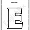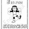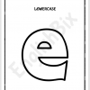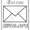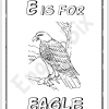 The Coloring sheets set include uppercase(E) and lowercase(e), along with pictures of eel, eagle, elk, envelope, egg, exercise, engine and other objects beginning with E.
