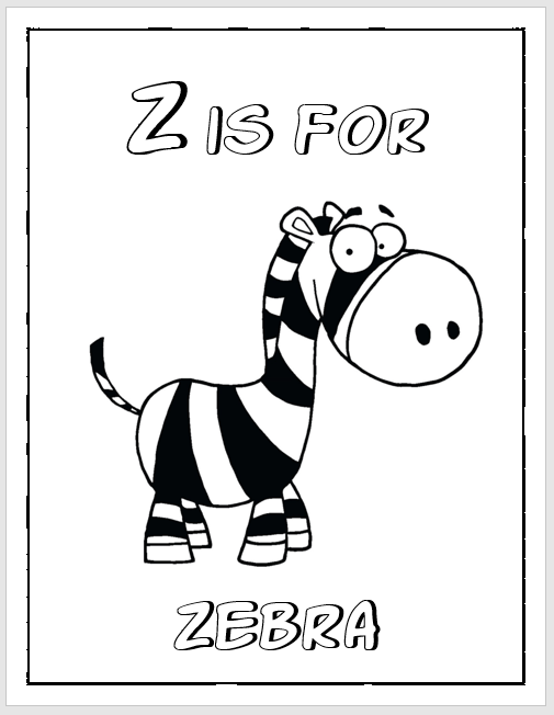 This is a short Letter Z coloring book with 8 pages for kindergarten and preschool kids.