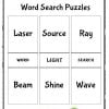 The word search printables test your knowledge of Light vocabulary which include words like source, straight, torch etc.