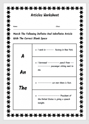 Tags: Definite Article - The, Indefinite Articles, Match the Following