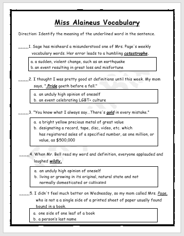 In this fun worksheet, you will read the given sentences and identify the meaning of the underlined words.
