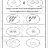 - Draw the alligator’s mouth at the center of each box to show which is more