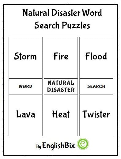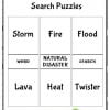 The word search printables test your knowledge of natural disaster vocabulary which include words like tornado, tsunami, storm etc.