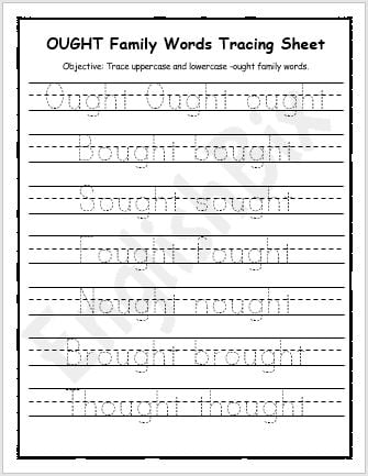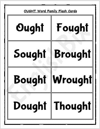 You’ll learn about OUGHT words from this packet!. Teachers will find different set of OUGHT Family words like Bought, Fought, Thought etc. to teach.