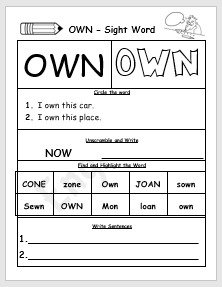 - A coloring activity of the word “own” in majuscule letters