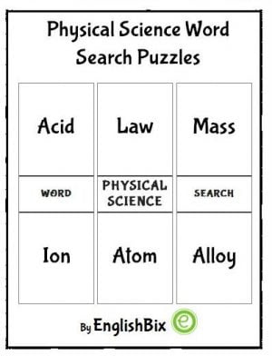 The word search printables test your knowledge of Physical science vocabulary which include words like variable, control, law etc.