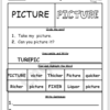 - A coloring activity of the word “picture” in majuscule letters