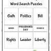 Print the puzzle for your kids and let them enjoy learning vocabulary words related to presidents day.