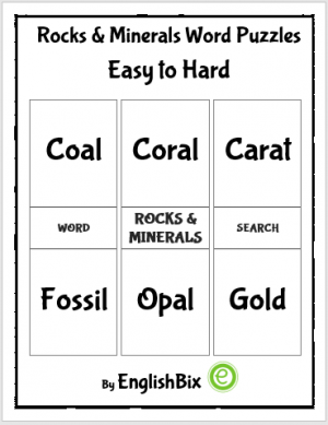 - A full-page word search with vocabulary words like emerald, facet, gypsum, gold, etc.