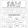 - A coloring activity of the word “saw” in capital letters