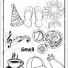 In this worksheet, your child will colour only the objects that they can smell. The worksheet includes pictures of a: