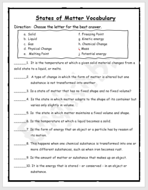This worksheet is perfect for students who are learning about the different states of matter in science.