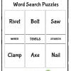 The word search printables test your knowledge of types of tools vocabulary which include words like axe, bolt, brush etc.