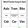 - An enjoyable 13×13 word search with words like boat, cart, cab, car, jeep, etc.