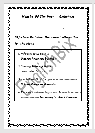 Tags: 12 Months of the Year, Underline the Words, Unscramble Letters
