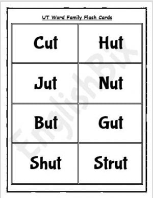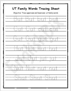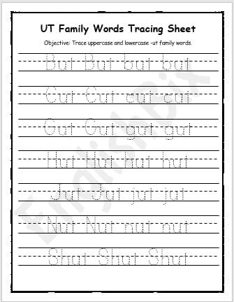 Kids will learn about UT words from this workbook!. Parents will find different set of UG Family words like but, hut, cut, shut, nut etc.