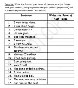 2) If the sentence in column 1 is in past tense students have to write the name of past tense form in column 2.
