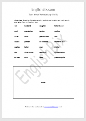 In this activity you are given the group of words, your job is to pick the family words which represent a male and write them in the given box.