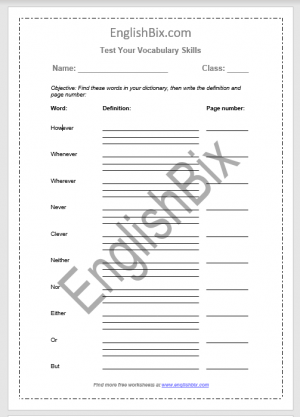 You are given the list of words for which you have to search dictionary and find their meanings and page number where they are defined.